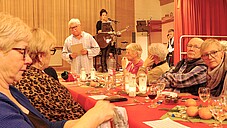 In Meisterschwanden spazierten wir zum Restaurant Delphin, wo für uns ein schöner Saal mit Blick auf den See reserviert wurde. Suppe statt Salat, dann Schnitzel mit Röstikroketten und ein Dessert standen auf der Speisekarte. Die zufriedenen Gesichter und die positiven Rückmeldungen erfreuten die Organisatorinnen. Es ist nämlich nicht so einfach, ein Menü, das den meisten zusagt, zu finden.