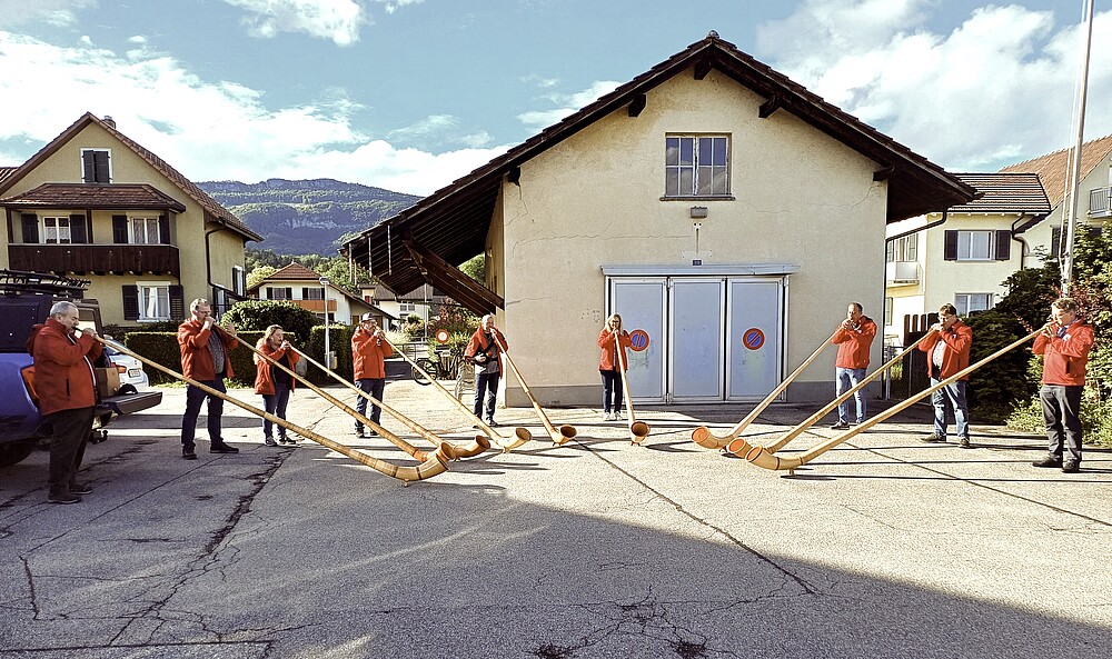 Ein Desserthalt in Kriegstetten bildete den kulinarischen Abschluss unserer Reise. Der letzte Höhepunkt des Tages waren die wunderschönen Alphornklänge der Alphorngruppe Geissflue.